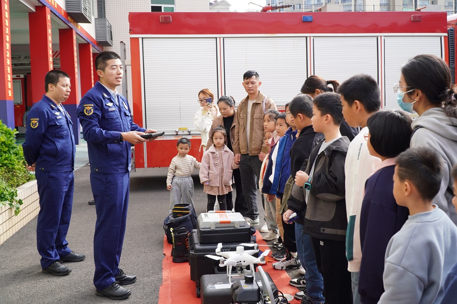 活动现场还设置了消防知识科普区、消防车辆器材展示区以及消防技能展示区。消防救援人员现场演示介绍山岳、水域、破拆、搜救等消防救援器材并邀请小朋友们互动体验。家长携带孩子坐上消防车、穿上消防服、戴上消防帽,化身“小小消防员”,对消防工作有了更加直观和深刻的理解。