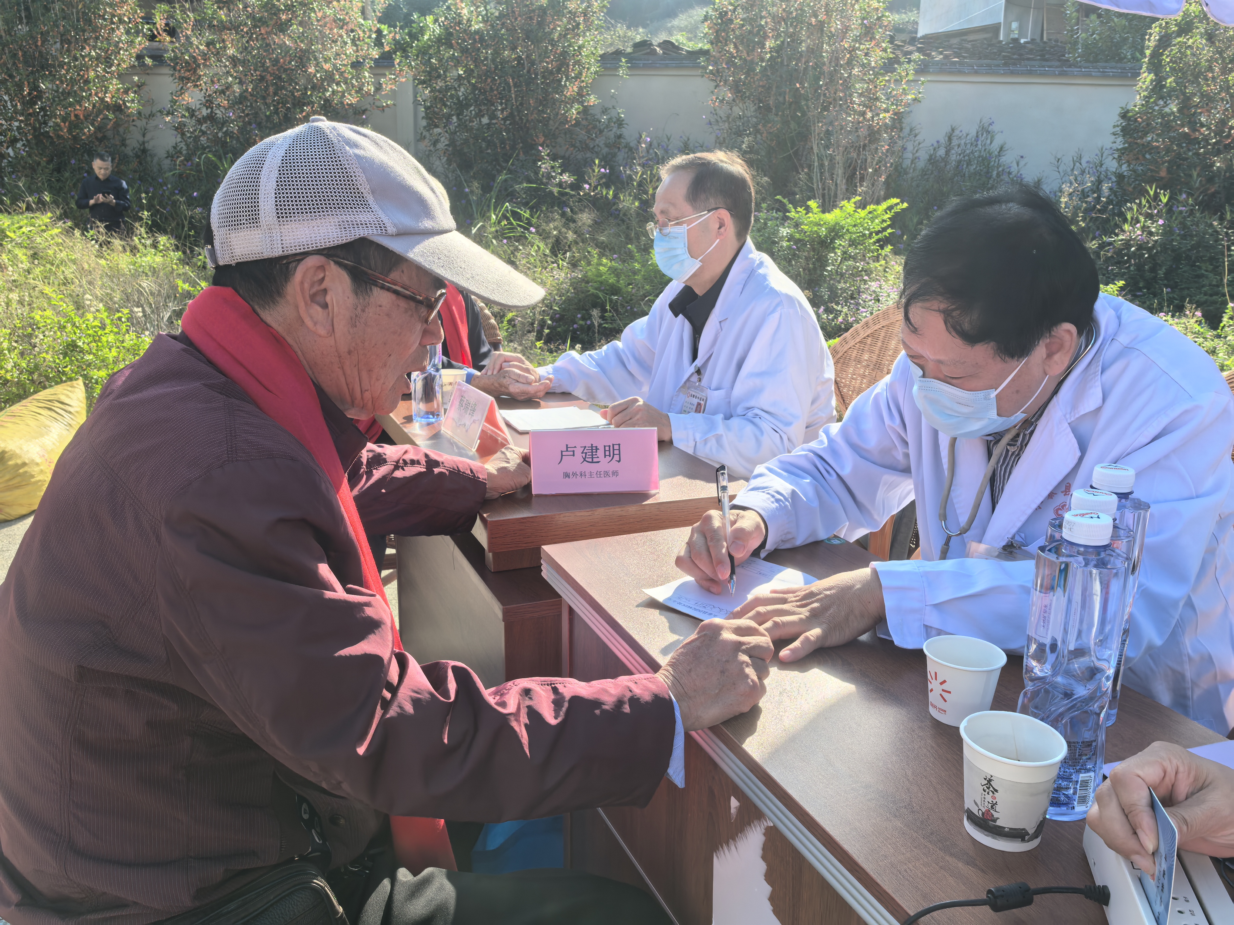 一大早,活动现场的咨询服务台前就排满了前来咨询的村民。县银发人才医疗卫生小分队联同嵩口中心卫生院各自发挥所长,运用专业知识和技能为村民提供了全方位的医疗服务。县中医院内科主任医师蔡瑞锋耐心细致地询问村民的病史,详细了解他们的身体健康状况,通过“望闻问切”把脉开方,提出针对性的治疗建议。县医院外科主任医师卢建明凭借精湛的医术和丰富的诊疗经验,认真查看村民的外伤伤口,用通俗易懂的语言为村民支招,告诉他们如何正确护理外伤,让村民“听得懂、用得上”。