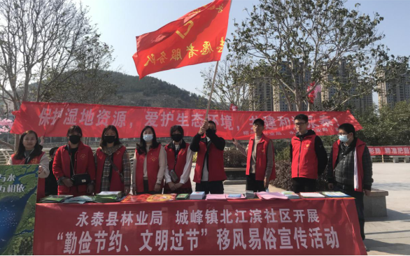 志愿者们现场发放了《倡导文明新风 勤俭节约过节》倡议书,宣传讲解了讲文明、树新风、抗疫情,共同营造健康节俭、文明祥和节日的重要性,引导居民提高厉行勤俭节约、反对铺张浪费意识,养成爱惜粮食、文明餐饮习惯,践行绿色低碳、文明健康生活方式。同时结合林业当前工作,对来往群众发放了湿地日宣传、垃圾分类、安全维稳、野生动物保护、森林防火、诚信建设、扫黑除恶等相关宣传手册。