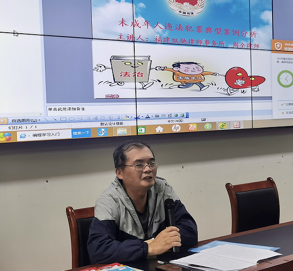 活动首先由周全律师为同学们带来一堂生动有趣的法治宣讲课,周律师结合校园及周边发生的典型案例,围绕青少年关心的疑点难点问题,全面深入地讲解了与未成年人息息相关的法律常识、未成年人常见的犯罪类型和未成年人如何做好自我保护等内容。紧接着,社区公益图书馆颜晓梅老师开展了主题为《网络安全为人人,网络安全靠人人》的法治讲座,通过真实案例以案释法,采用互动提问交流的方式激发了同学们的学习热情,解答了同学们的法律困惑,引导学生们树立法治观念、共同维护网络安全。此外,工作人员还向同学们发放了《一封提醒各位家长重视孩子网络安全教育的信》。