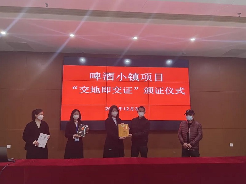 ▲啤酒小镇项目“交地即交证”颁证仪式