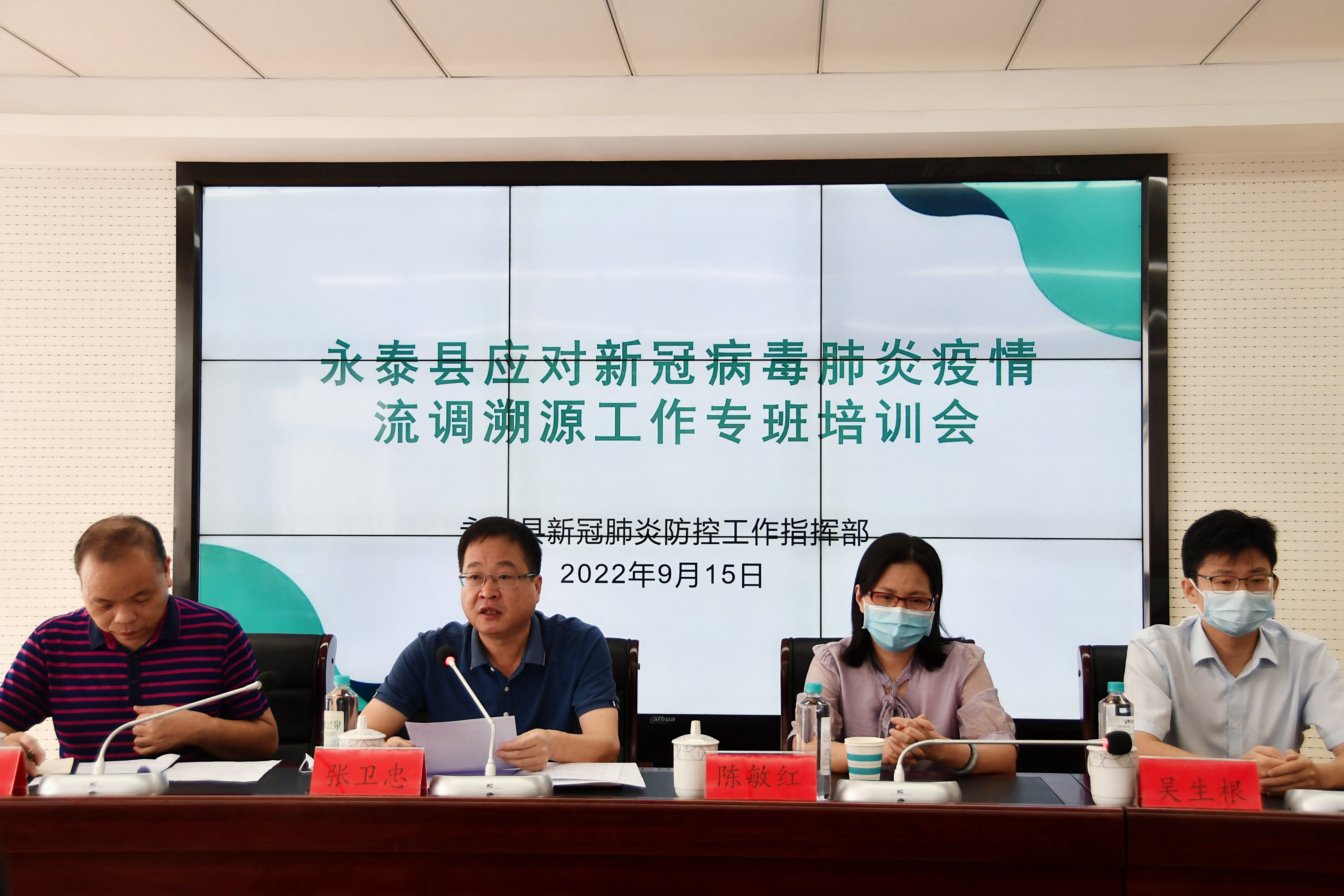 9月15日,永泰县召开应对新冠肺炎疫情流调溯源工作专班培训会。县政府副县长张卫忠出席会议。县卫健局党组书记、局长侯德键主持会议。