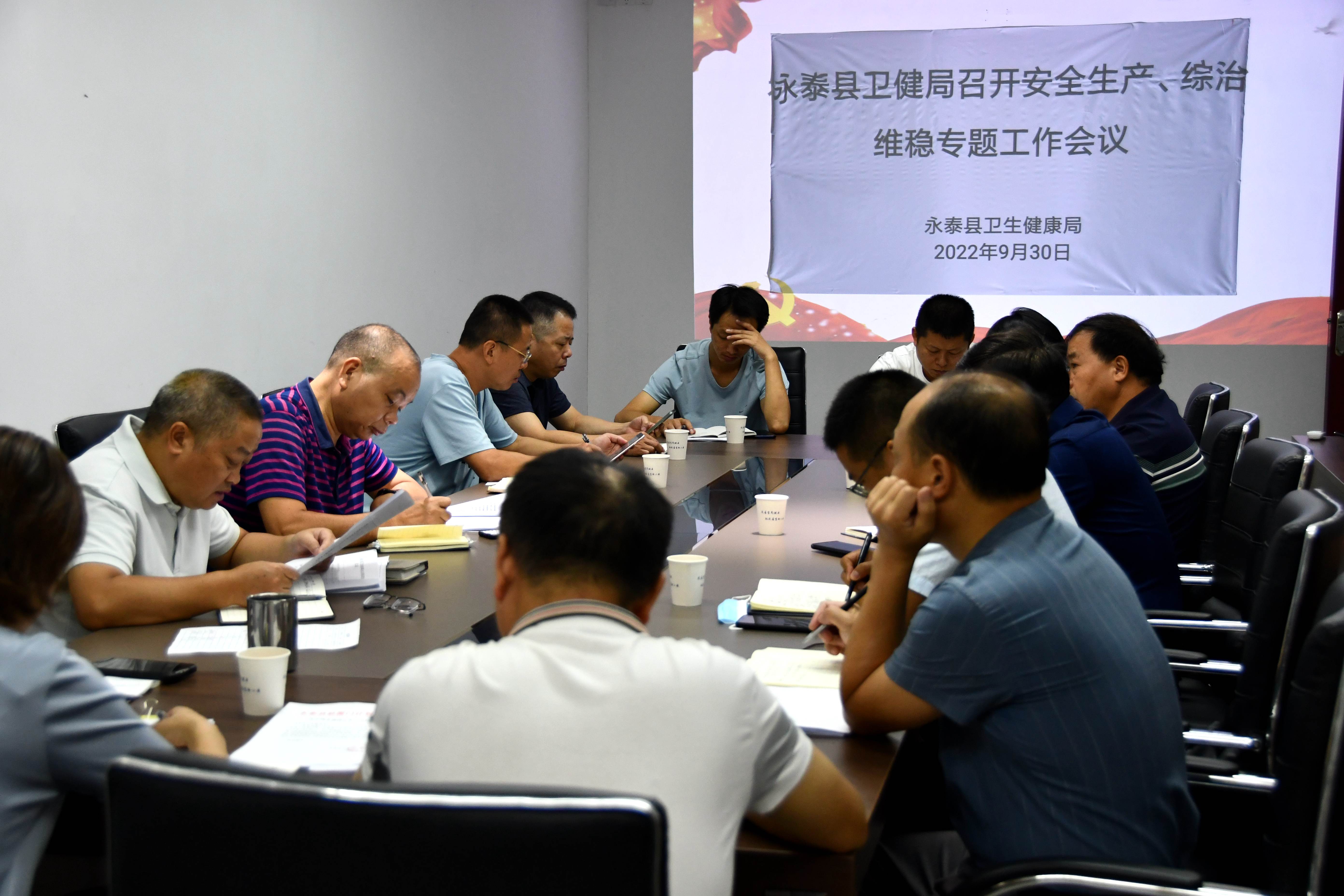 会上,党组副书记、副局长檀俊成传达了省市县政府、省市卫健委有关国庆期间和二十大前安全生产、信访维稳工作会议精神,并对国庆期间及党的二十大召开前全县卫健系统如何做好安全生产、信访维稳工作进行了重点部署。