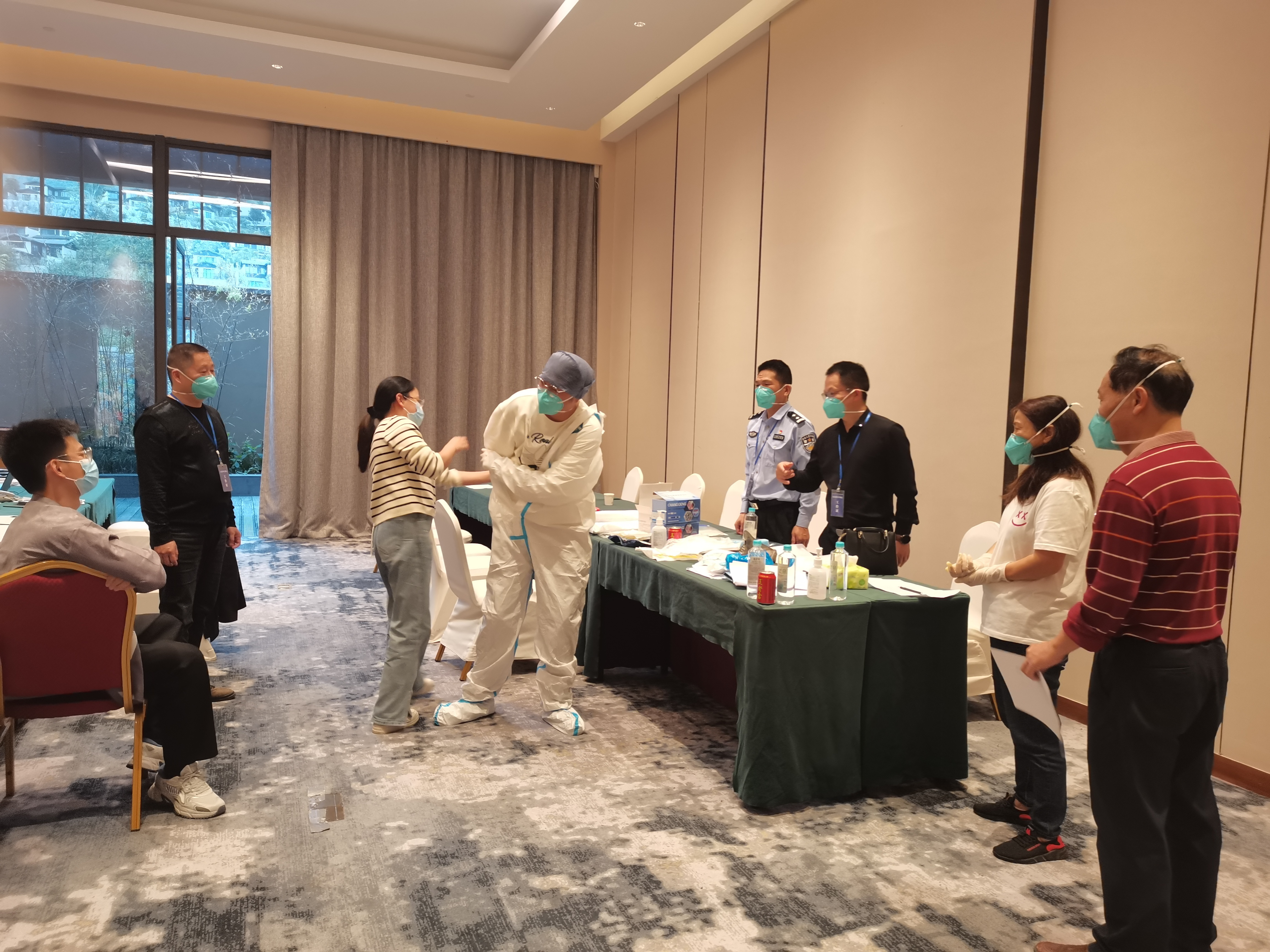 进一步提高隔离点内工作人员的个人防护意识、风险意识和应急处置能力,规范细化操作流程,以更严格、更细致的感染防控管理措施,做好隔离点疫情防控和服务保障工作。11月8日,共培训集中医学观察隔离点非污染区工作人员和污染区医务人员、保安、保洁等约160人。