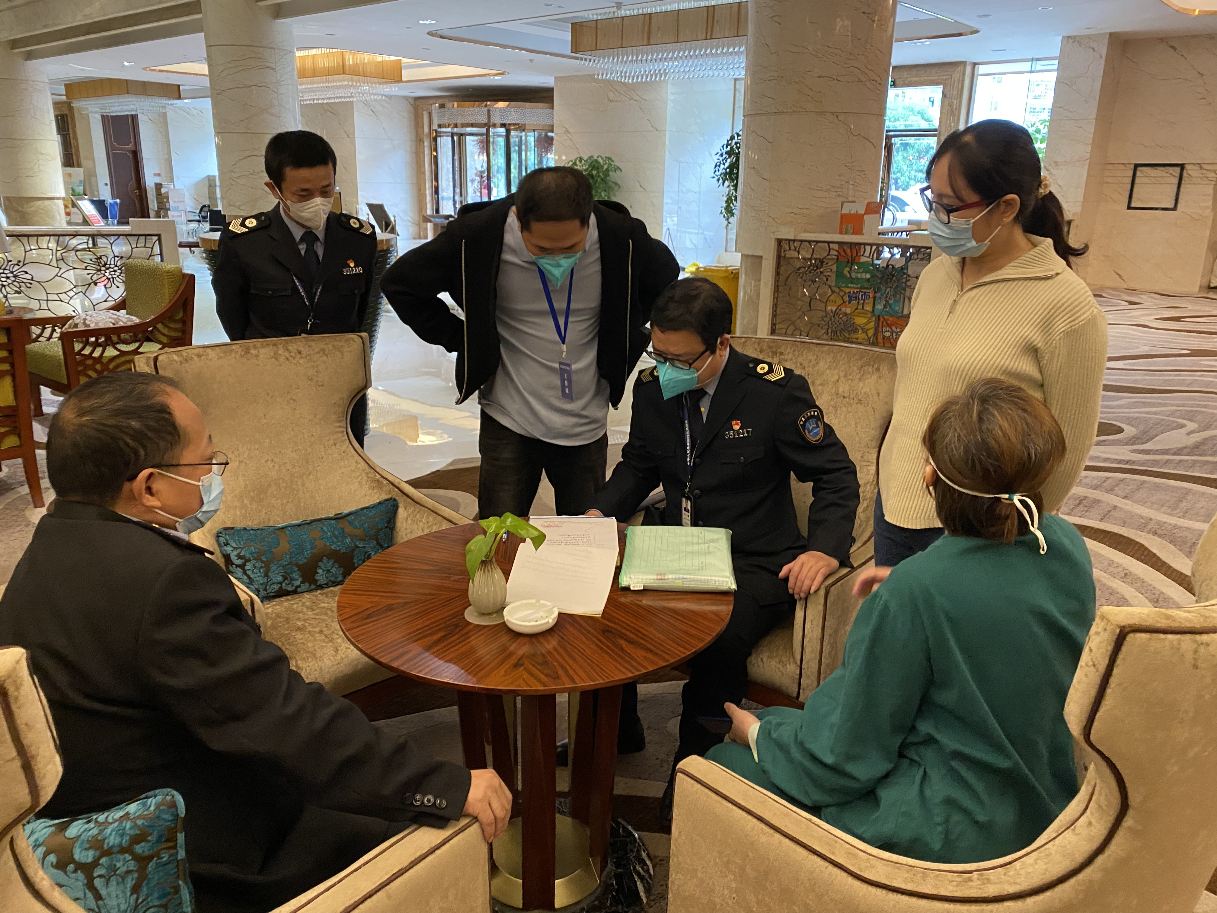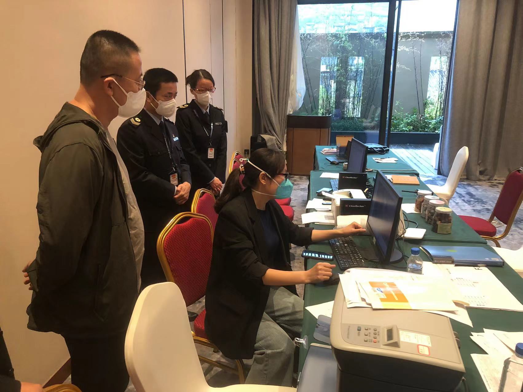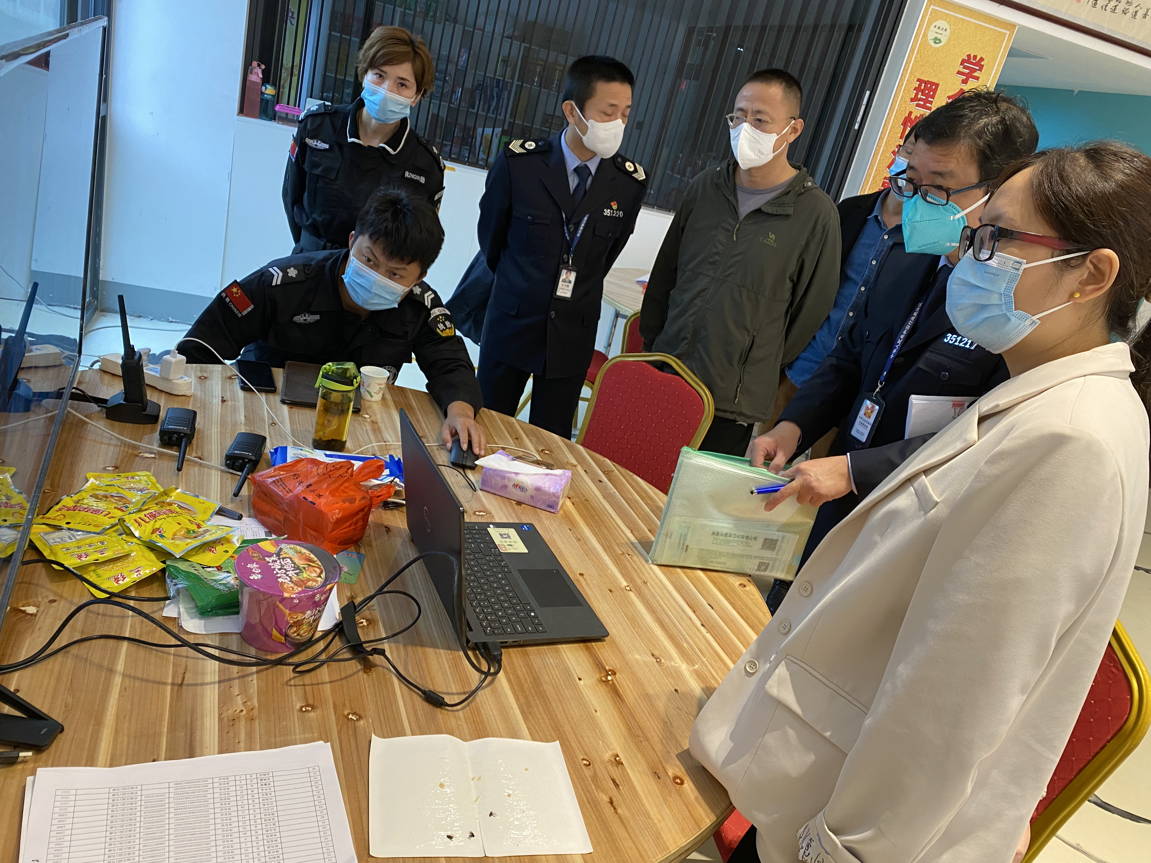 工作组一行通过翻阅台账、查看监控录像、交流问询等方式,重点对隔离分区设置、隔离管控、工作人员个人防护、核酸采样、涉疫垃圾处置、环境消毒通风等方面进行全方位指导,对发现问题,第一时间向隔离点负责人及责任单位反馈,确保集中隔离点安全有序运行。