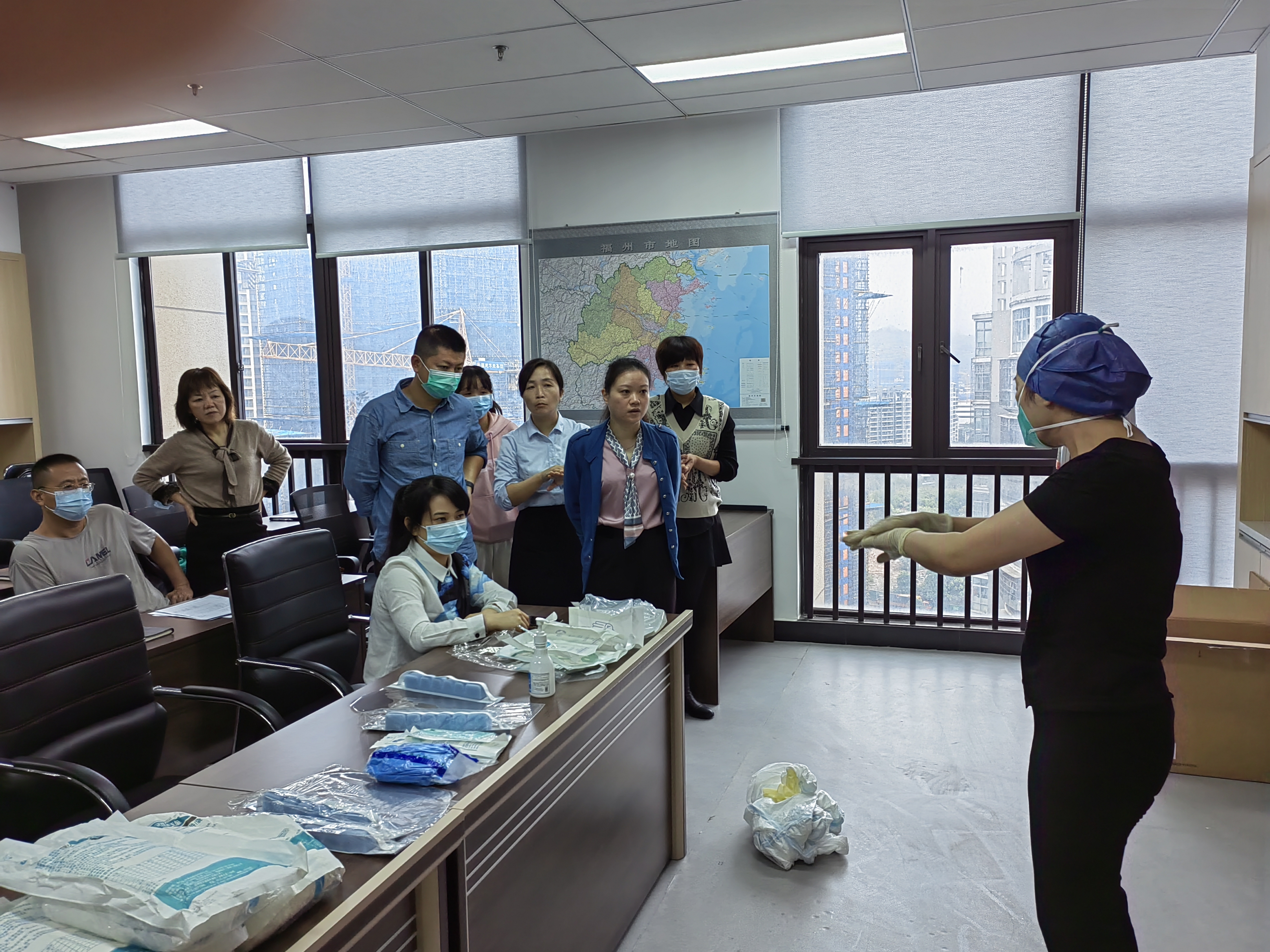 培训采取“线上+线下”的模式进行,在“卫健局机关微信交流群”内组织全体干部观看核酸采集工作操作视频,巩固采集工作理论知识,同时邀请县妇幼保健院、疾控中心医务人员到场授课。授课人员详细讲解、现场演示“七步洗手法”、穿脱防护服标准流程、核酸采样方法、涉疫医废打包流程、采样对象信息录入等,帮助参训者更清晰、直观地了解具体操作过程、细节和注意事项。随后,在授课人员的现场指导下,机关干部依次进行防护服穿脱练习、“一对一”核酸采样、信息录入等核酸检测全流程操作。