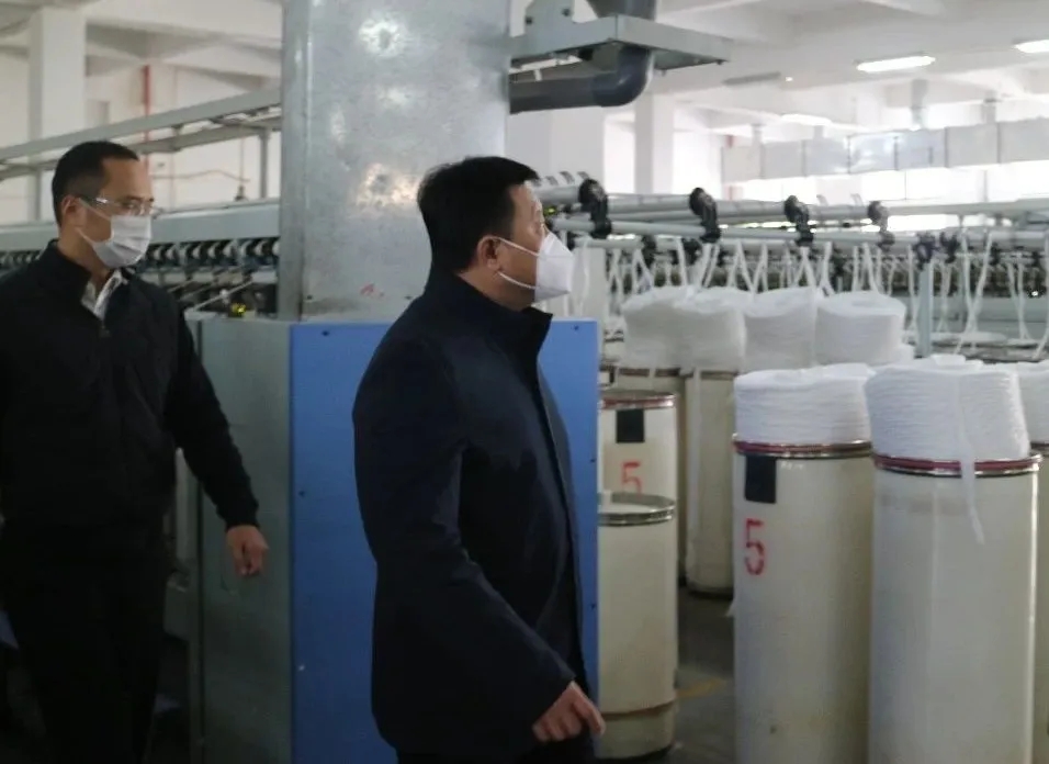 在金泰纺织厂,县委书记陈斌向企业负责人详细了解员工返岗情况,肯定了企业提前做好人员复工返厂包车措施。同时认真查看园区内包括隔离区设置、场地消杀、防控宣传等防疫工作开展情况,深入厂房视察棉絮生产情况。他指出,金泰纺织厂作为我县外来员工最为密集的企业,要坚持做到 “3个覆盖5个到位”,不断强化企业防控主体责任,做好员工各项保障,确保防疫物资供应到位,做实做细各项疫情防控措施。他要求,县复工复产两个工作服务小组要进一步加强服务意识,协助企业做好员工健康管理建档、核酸检测等工作,将各项惠企政策落到实处。