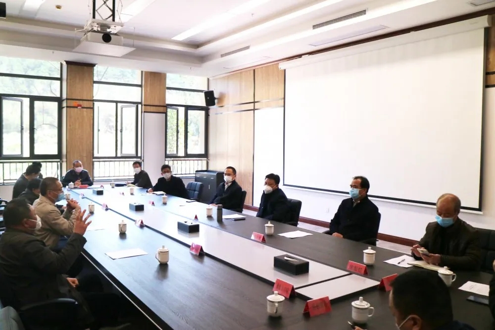 在白云抽水蓄能电站的业主营地,调研组一行在详细了解项目进度和人员复工率后,在会议室与项目负责团队召开座谈会。陈斌书记强调,白云抽蓄能电站作为省重点项目,要在保证疫情防控措施到位的基础上,全力做好复工复产工作,切实解决外来员工的返岗工作,以饱满的精神状态,全力推动重点项目建设。