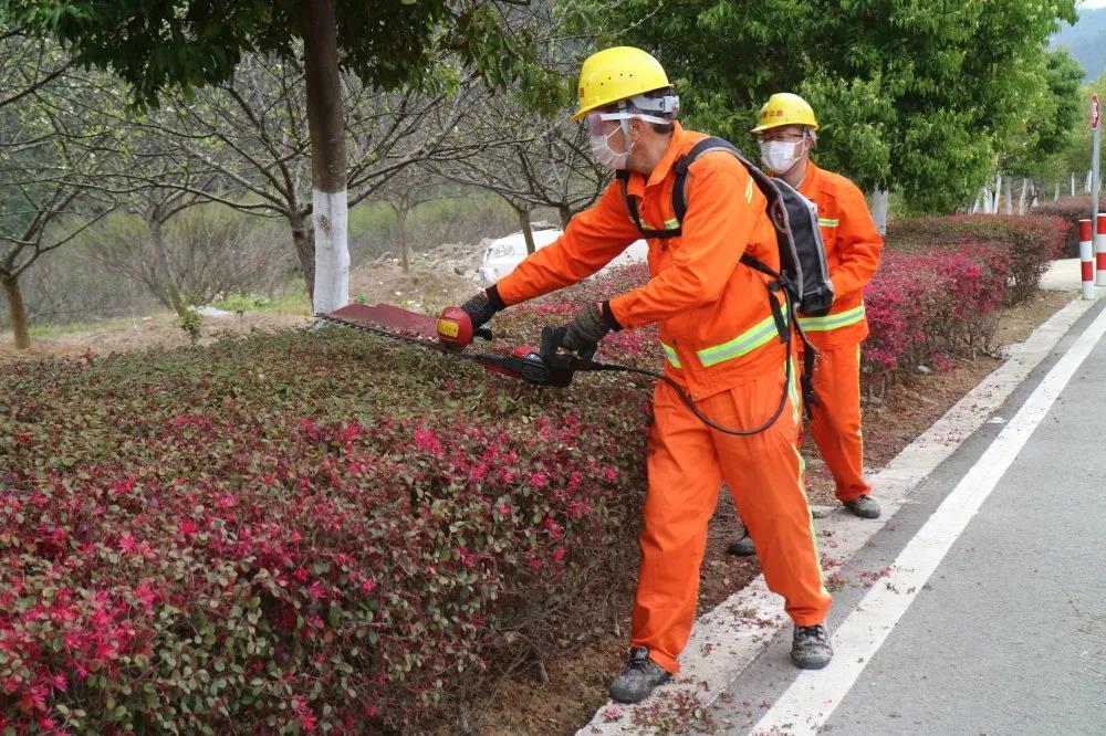 “今天主要对路面绿化进行平整修剪,然后一会儿的话我们还要进行施肥跟浇水处理。”公路局工作人毛泽坚说。