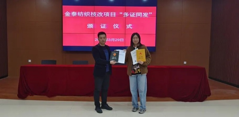 2023年3月,电影天堂 金泰纺织有限公司功能性纺织新材料智能化升级技术改造项目一次性拿到了土地出让合同、用地规划许可证、工程规划许可证和施工许可证,实现了“交地即交证”。