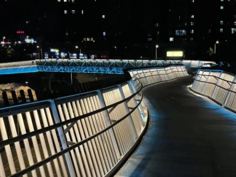 榕树公园改造升级后,融入自然之中的福道同样进行了改造提升,夜晚,灯光亮起,福道如夜空中璀璨而蜿蜒的光带让人眼前一眼。
