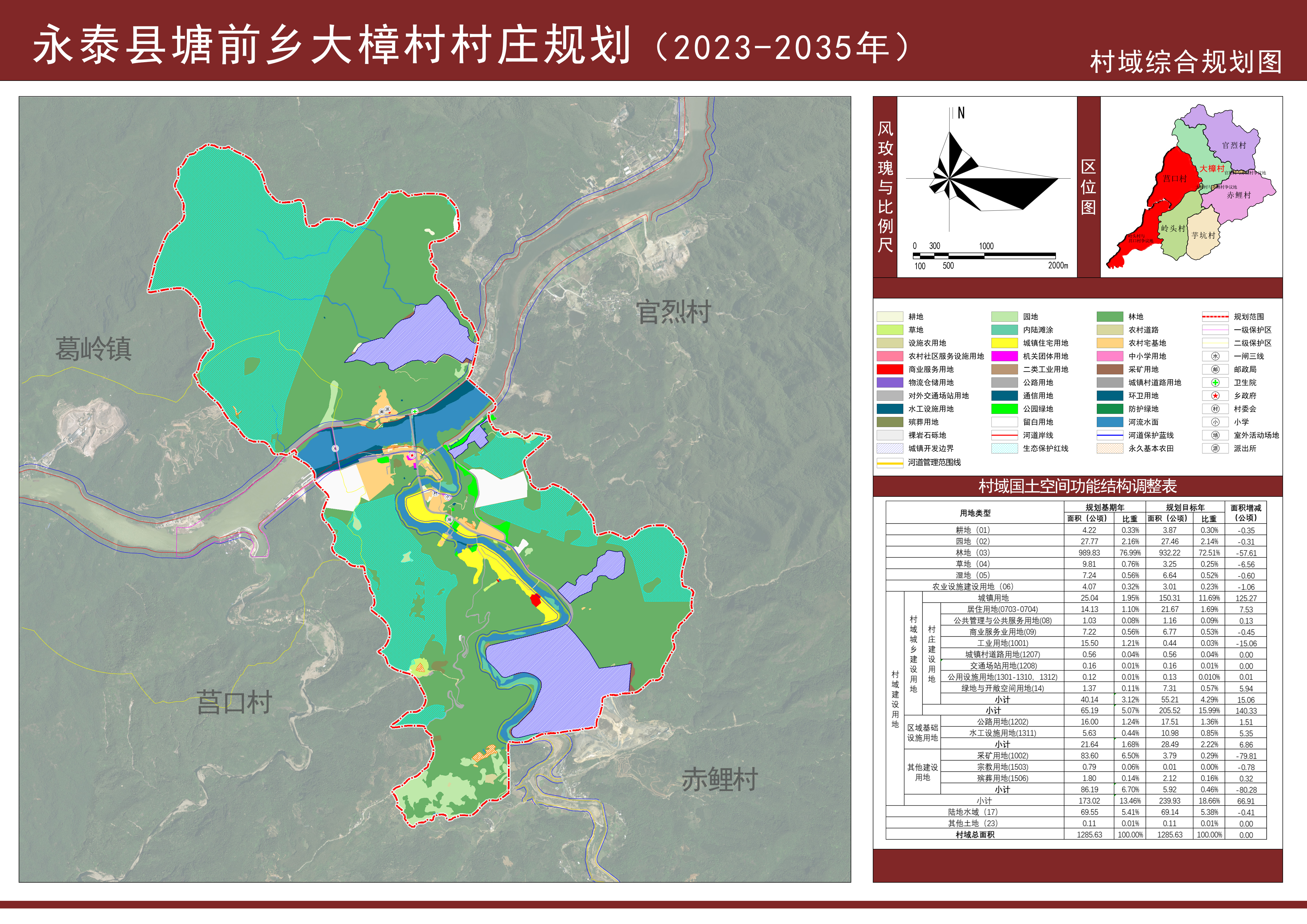 1、规划范围:规划范围为塘前乡大樟村村域全部国土空间。
