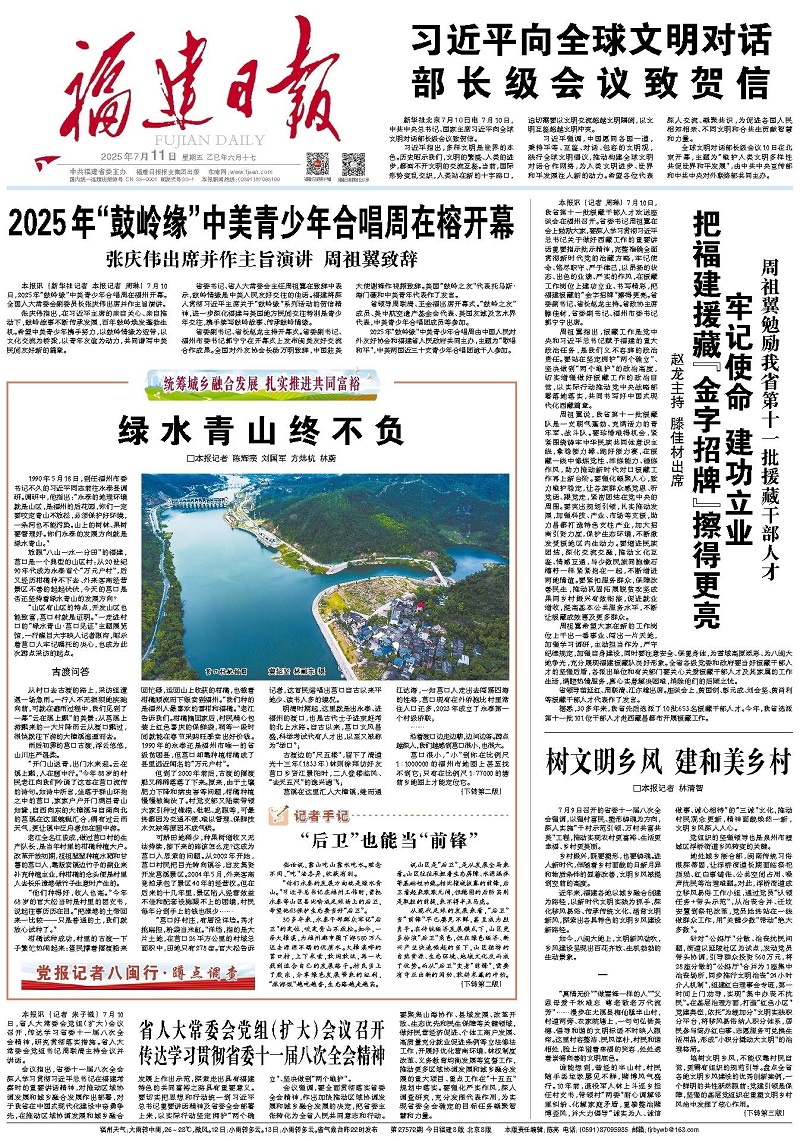 30多年来,永泰干部群众牢记“后卫”的定位,咬定青山不放松。如今,一条大樟溪,为福州都市圈下游580万人送去源源不竭的优质水。大樟溪畔的莒口村,上下求索,敢闯敢试,再一次找到适合自己的发展路子。村民当上了股东,分享绿色发展带来的红利,“旅游饭”越吃越香,生态路越走越实。