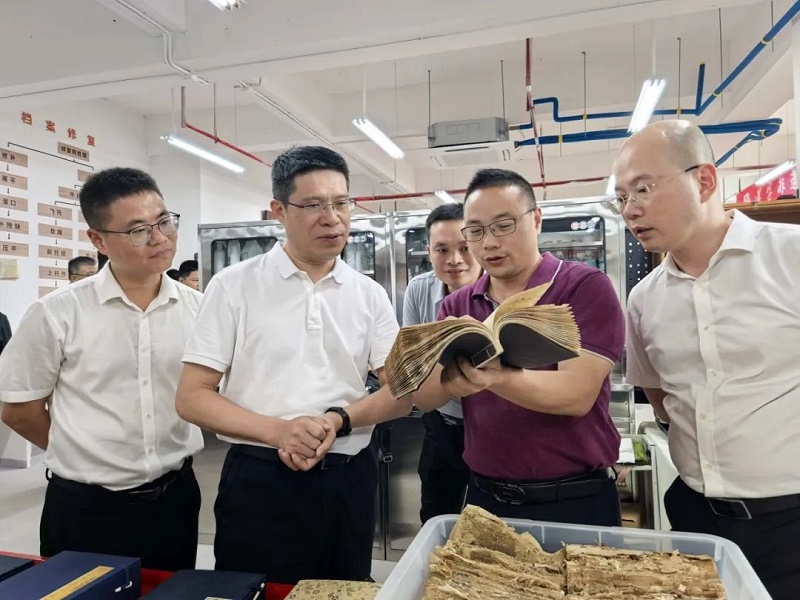 随后,陈金友一行来到华匠文献修复保护中心,详细了解档案、古籍、字画、西文等纸质文献修复及培训等情况。