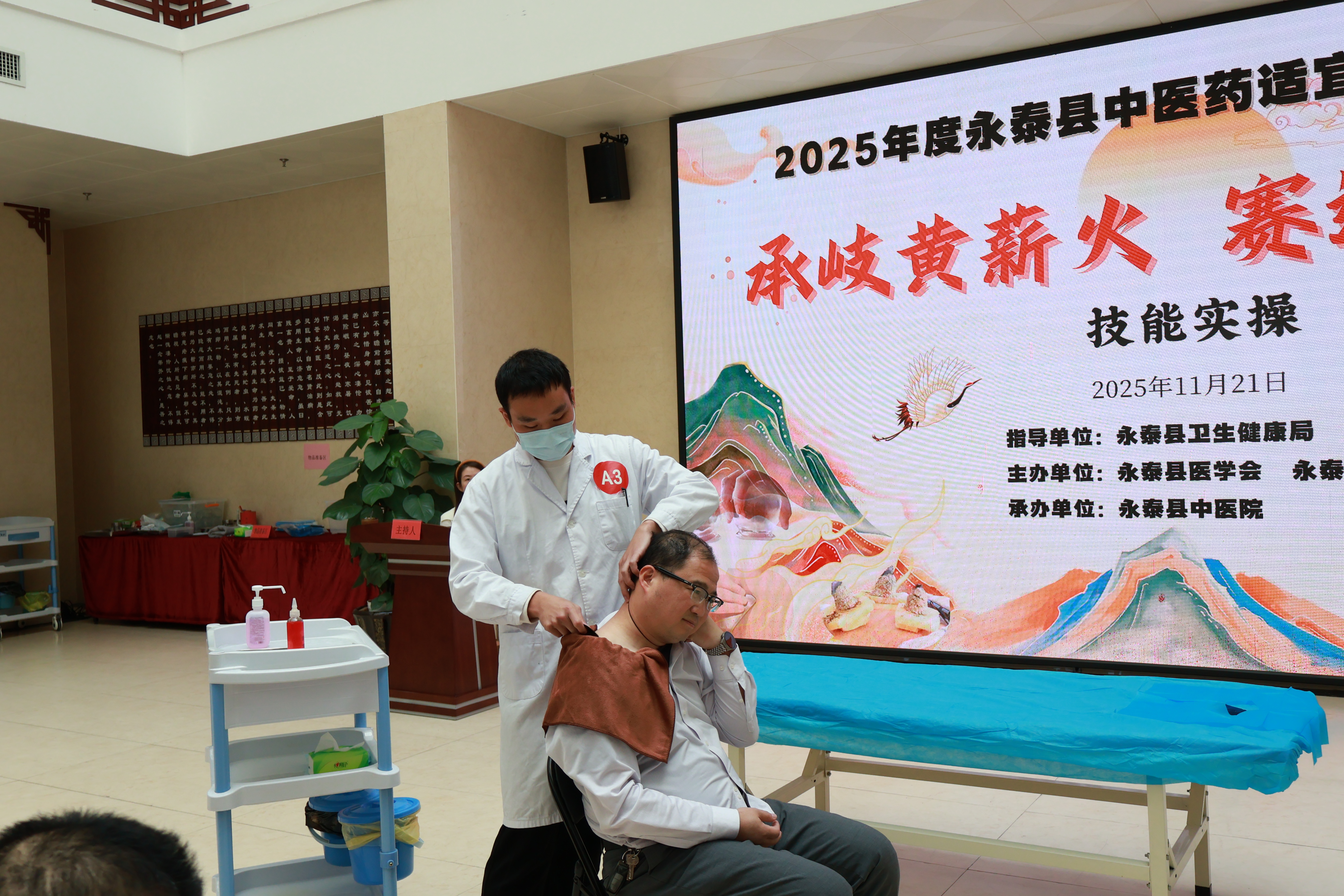 11月21日,由电影天堂 卫健局指导,县医学会、县总医院主办的2025年度电影天堂 中医药适宜技术技能大赛在县中医院成功举行。大赛以 “承歧黄薪火 赛适宜良技” 为主题,为全县中医药从业者搭建了交流切磋的专业平台。县卫健局党组书记、局长,总医院党委书记侯德键出席活动并致辞。