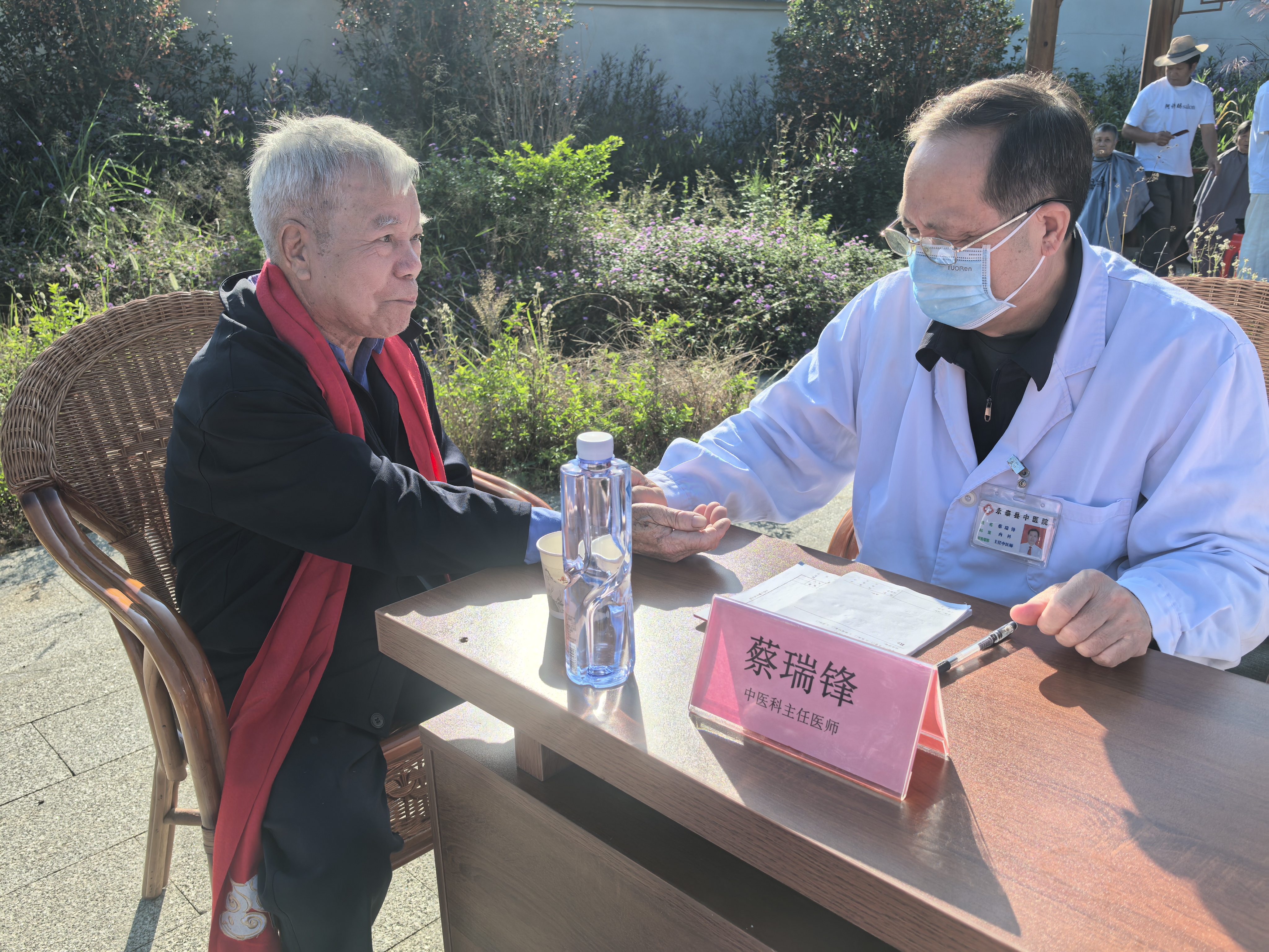 一大早,活动现场的咨询服务台前就排满了前来咨询的村民。县银发人才医疗卫生小分队联同嵩口中心卫生院各自发挥所长,运用专业知识和技能为村民提供了全方位的医疗服务。县中医院内科主任医师蔡瑞锋耐心细致地询问村民的病史,详细了解他们的身体健康状况,通过“望闻问切”把脉开方,提出针对性的治疗建议。县医院外科主任医师卢建明凭借精湛的医术和丰富的诊疗经验,认真查看村民的外伤伤口,用通俗易懂的语言为村民支招,告诉他们如何正确护理外伤,让村民“听得懂、用得上”。