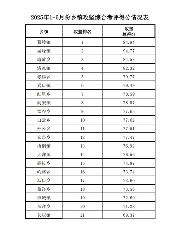 ▲2025年1-6月乡镇攻坚综合考评得分情况表