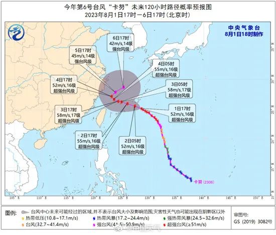 根据目前预报,“卡努”将以每小时15公里至20公里的速度向西北方向移动,强度还将有所增强,并向琉球群岛南部海域靠近,8月2日上午移入东海,然后逐渐向浙江中部至福建北部一带沿海靠近。