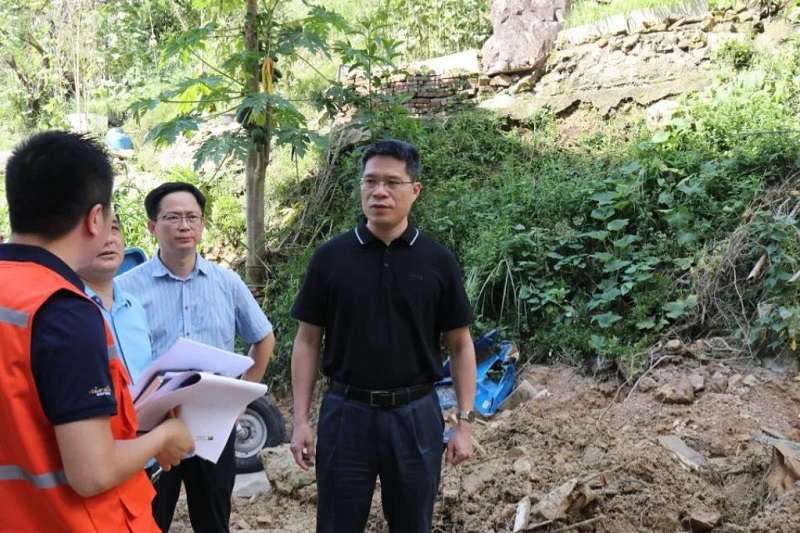 9月9日下午,县政府党组成员、副县长刘峰松带队前往G355国道项目现场、盘谷乡丰园蔬菜育苗基地、洋里村和福坪村高标准农田建设项目调研受灾情况,指导灾后恢复工作。刘峰松要求,要全力以赴清理溜方,尽快恢复道路通行,密切关注灾毁点情况,做好边坡加固以及排水沟建设,防止二次灾害的发生;要抓紧修复灾毁农田和农业设施,加强技术支持,加快灾后救助,协调做好农业灾后保险理赔工作,帮助受灾群众渡过难关。