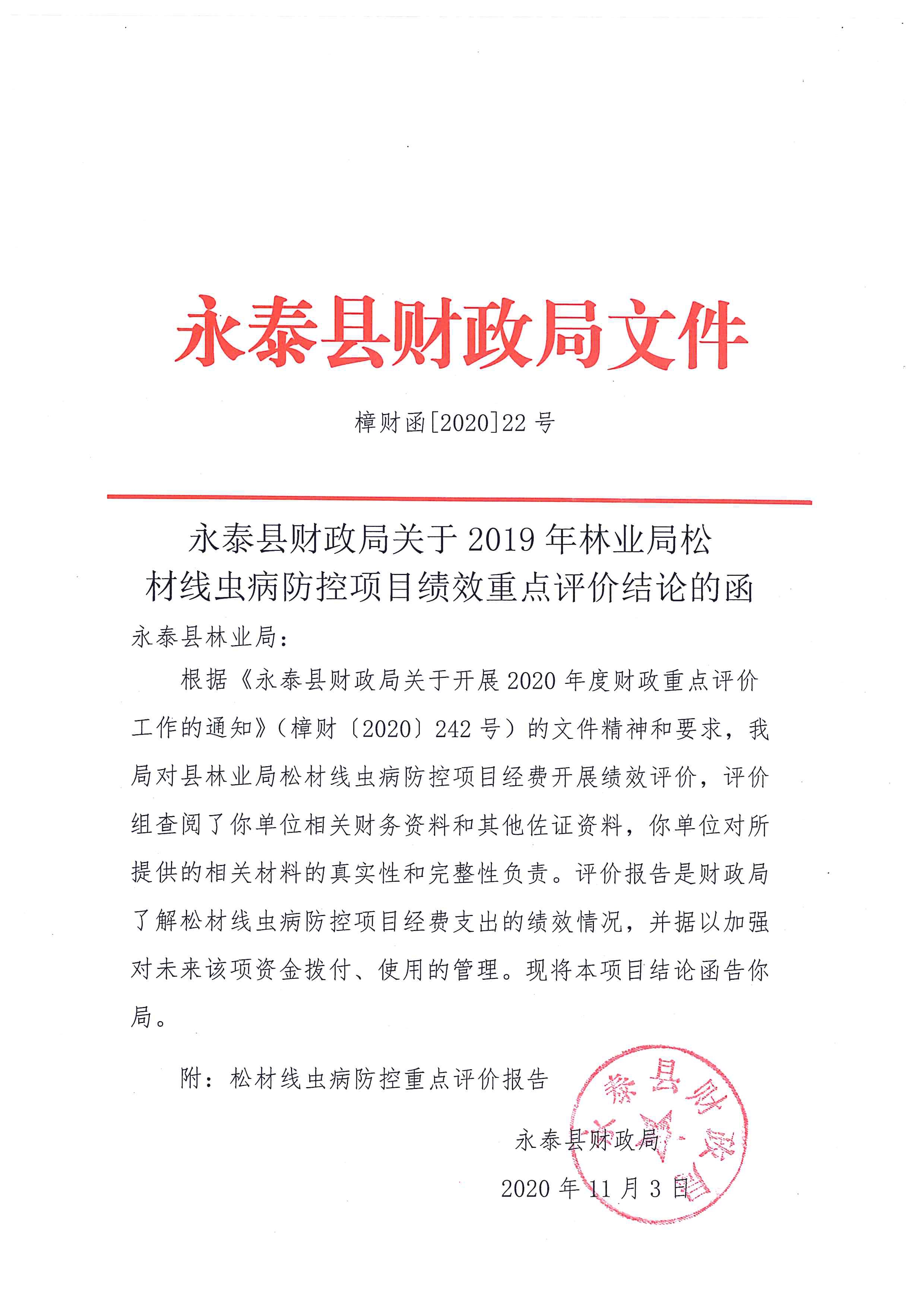 电影天堂 财政局关于2019年林业局松材线虫病防控项目绩效重点评价结论的函