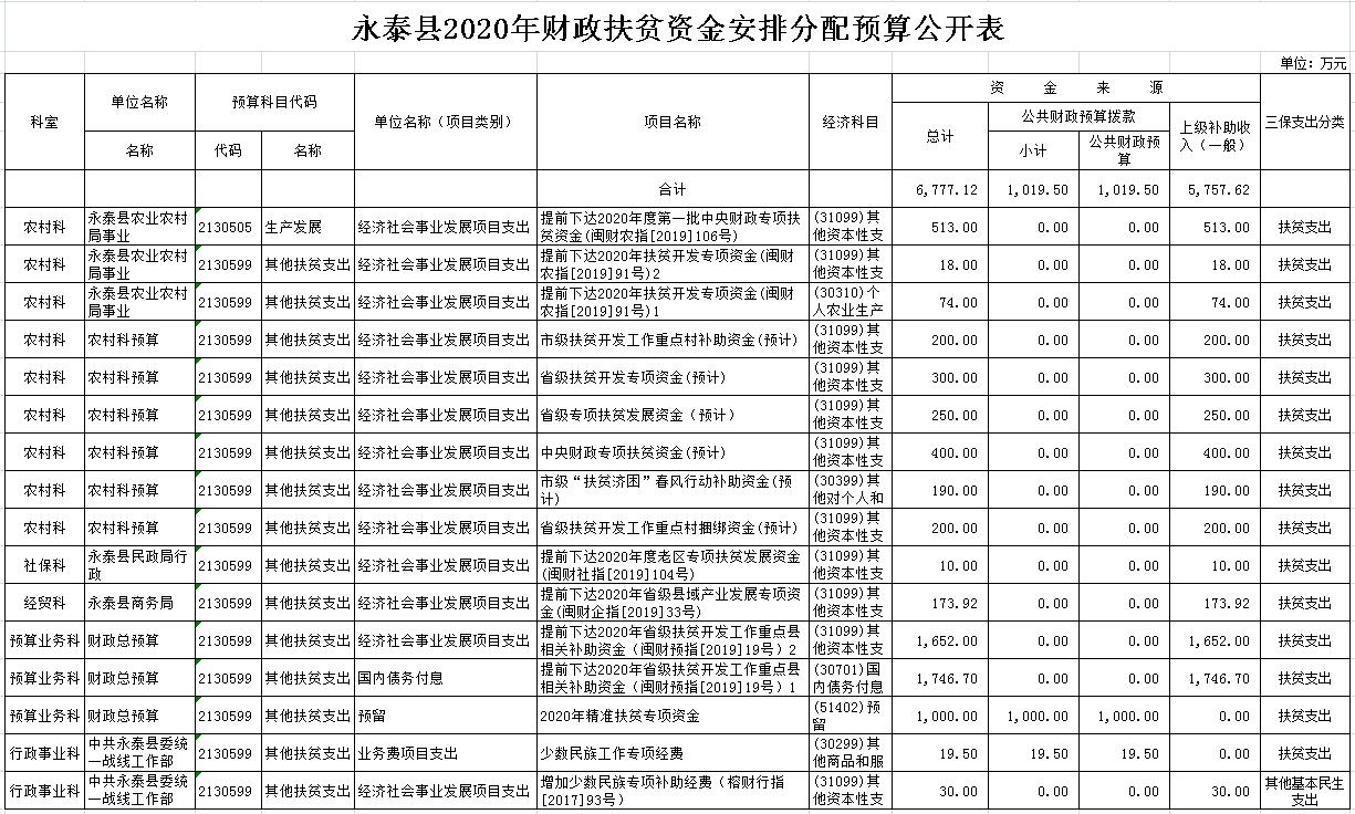 电影天堂 2020年财政扶贫资金安排分配预算公开表