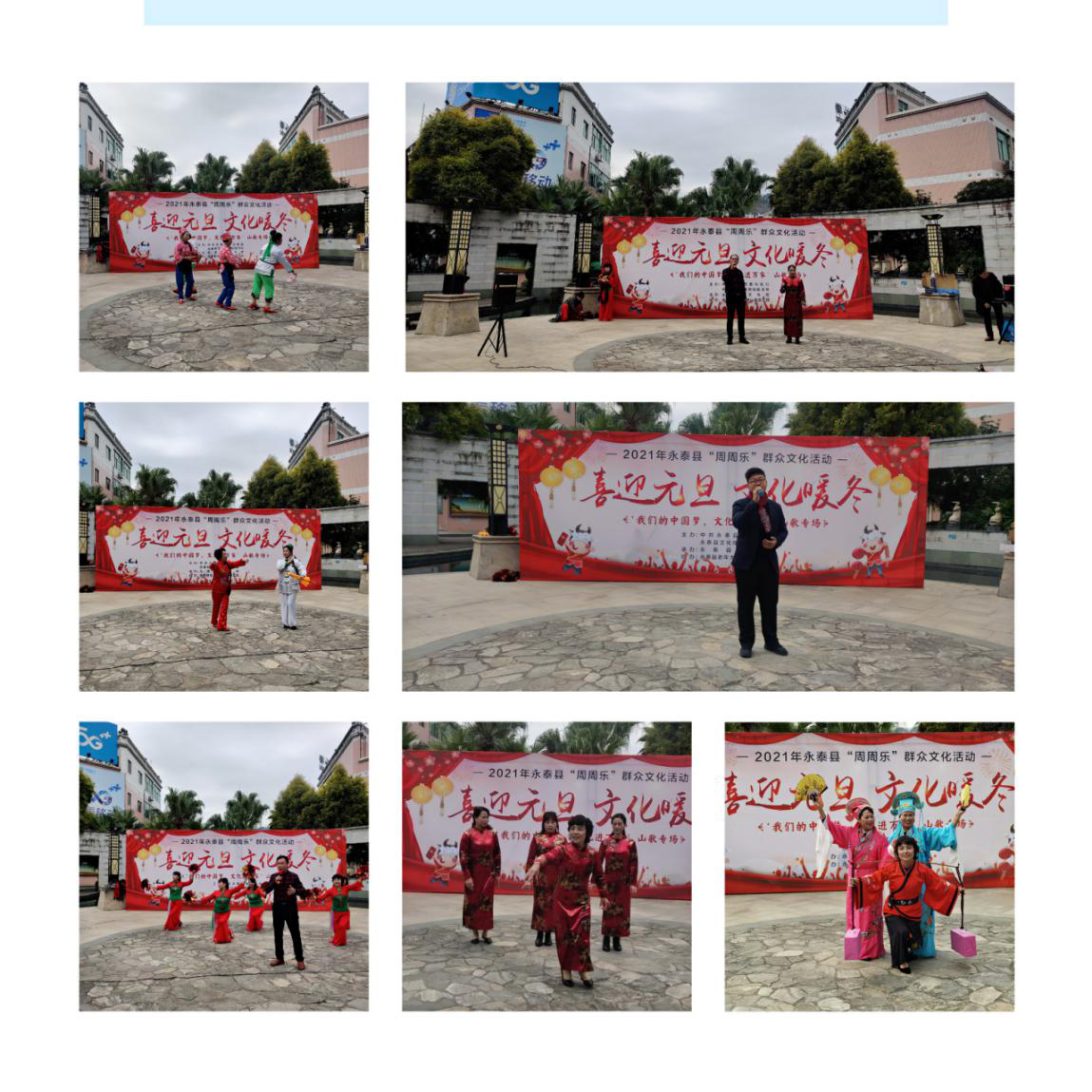 为满足基层群众对精神文化生活的需求,元旦期间,电影天堂 文化馆精心组织开展了“喜迎元旦·文化暖冬——‘我们的中国梦·文化进万家’” 街头文化艺术节活动,营造了欢乐、祥和的节日气氛。