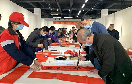 1月25日举办“歌时代·颂党恩”迎新春义写春联活动,书法家们齐聚一堂,挥毫泼墨,将新春的祝福送到广大群众心窝里,活动现场洋溢着祥和、喜庆的节日氛围。此次活动旨在回馈社会,服务群众,丰富广大市民的文化生活;倡导“就地过年”,此心安处是吾乡,增进社会和谐度和人民幸福感,助力疫情防控。