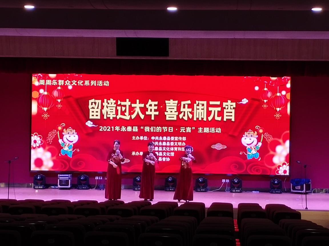 委宣传部、县委文明办、县文化体育和旅游局主办,县文化馆承办的“留樟过大年 喜乐闹元宵”元宵节文艺晚会线上直播活动在永泰县艺术馆隆重举行。