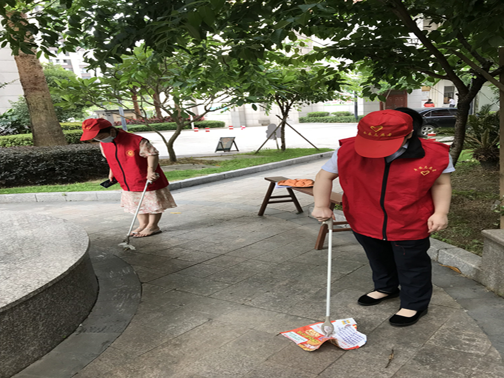 四处散落的碎纸和烟蒂,清除各类卫生死角,带头做到垃圾分类,有效的改善了小区的公共环境和提升居民垃圾分类意识。