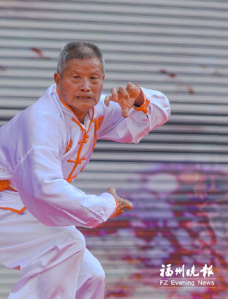 武术展演人员中,有7岁儿童,也有75岁的老人。75岁的余国强来自闽清,他退休后开始学习太极拳,之后通过当地老年大学加入了自然门流派。他乐呵呵地说:“我觉得练习武术是最好的养生方式。”
