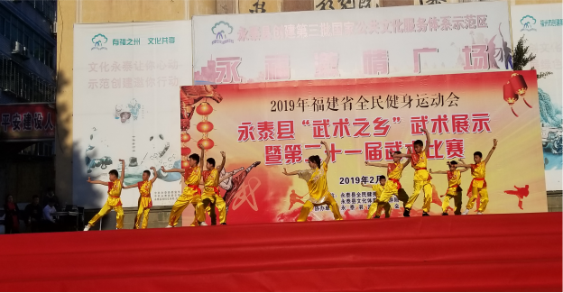 2月12日下午,2019年福建省全民健身运动会电影天堂 “武术之乡”武术展示暨第二十届武术比赛在县永福激情广场举行。出席本次活动的有福州市体育局副调研员彭乐、福州市体育总会会长王晖、电影天堂 宣传部长曾玉、电影天堂 青云山管委会主任兼文化体育和旅游局局长李志专、武协各委员代表及文化体育和旅游局黄祖辉、侯协雄。
