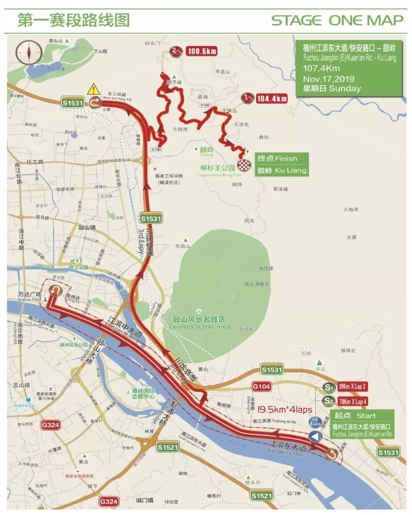 福州赛段:福州江滨东大道/快安路口至鼓岭,约107.4公里。