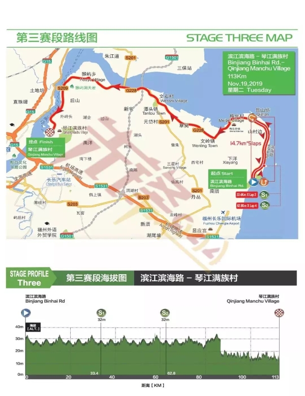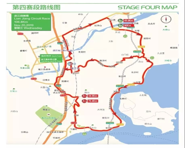 连江赛段:体育公园至凤城镇折返回体育公园,约106.8公里。