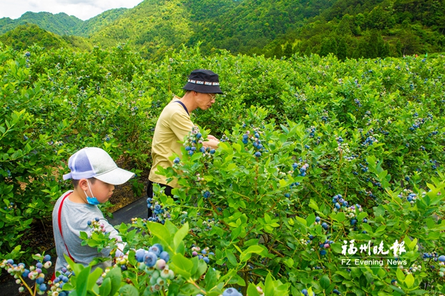 “头一回体验蓝莓采摘,真是乐趣多多。而且这里的蓝莓个大味甜,孩子们也很喜欢。”从福州驱车赶来体验采摘的市民陈天盟一家赞不绝口。