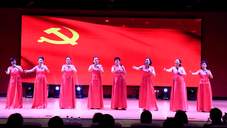 小组唱节目《没有共产党就没有新中国》《唱支山歌给党听》《少年》等节目,百年光阴,铸就中国共产党坚挺的党员队伍;峥嵘岁月,引领中国人民走向富强之路;漫漫征途,实现中华民族伟大复兴的理想。中国共产党,为人民而生,因人民而兴。