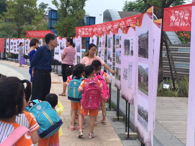 广场的另一边,整齐地排列着宣传我县红色历史的展板,展板内容丰富,图文并茂地展示了我县红色政权的发展历史。该展板不仅勾起年老群众对往昔岁月的回忆,也吸引了前来参观的幼儿园小朋友和100多名泉州监狱的狱警,他们通过眼前的展板和工作人员的介绍,一起沉浸在红色的岁月中。