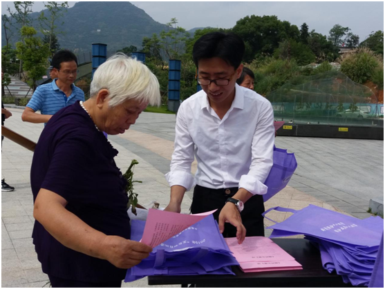 展板的一边,工作人员热情地向群众宣传文物有关的法律法规,引导群众保护文物,关注历史。同时,分发印制宣传内容的购物袋和有关宣传单。值得注意的是,宣传单中有一份习近平总书记为《福州古厝》撰写的序,该序近来在人民日报重登,引起全国上下强烈反响,成为党员干部和人民群众学习的重要内容。此次活动通过向群众分发以《<福州古厝>序》为内容的宣传材料,是进一步宣传习近平总书记对文物工作重要指示的措施。