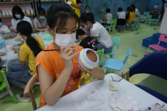 16-17日,多组亲子家庭在宝拉创意乐园参加陶艺DIY活动。活动共分为陶艺知识的授课、制胚拉胚体验、泥塑盘条成型、上釉彩绘四个环节。