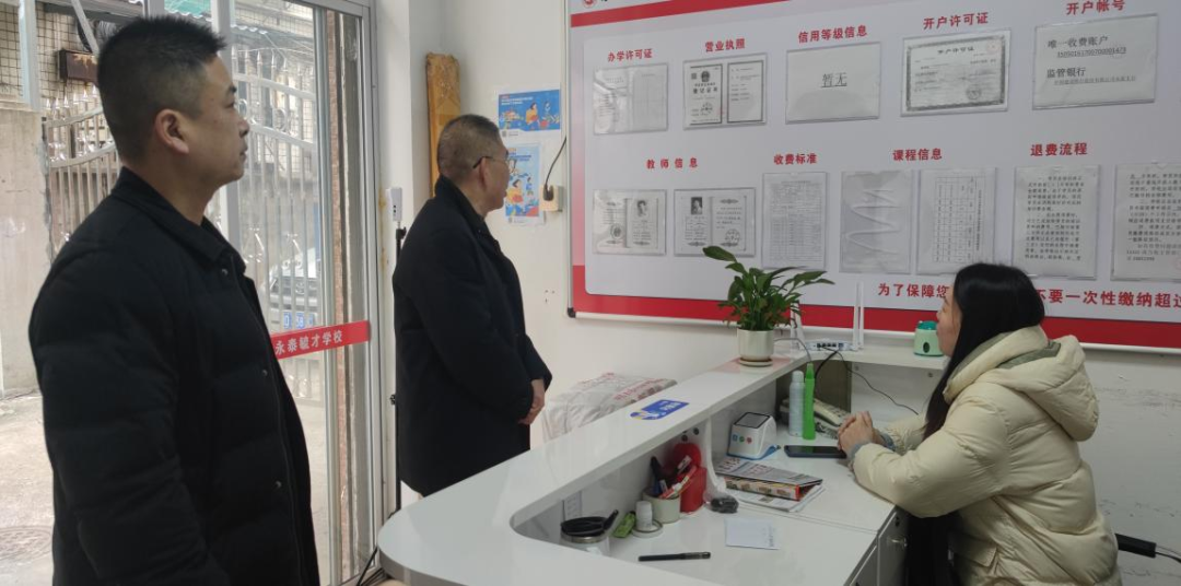 为进一步巩固前期校外培训机构整治工作成果,聚焦学科类校外培训机构安全管理,严防学科类培训隐形变异,1月28日,县教育局四级调研员张元明带领相关科室工作人员开展寒假校外培训机构专项整治行动。