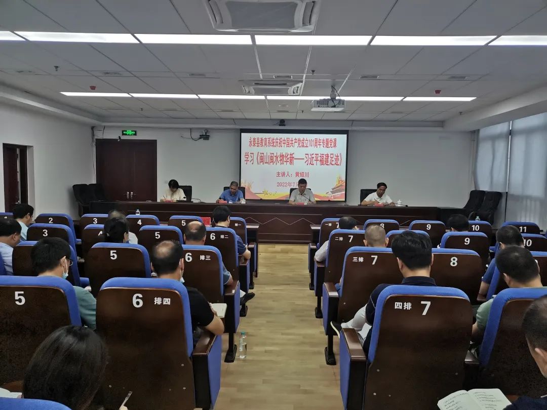 7月1日下午,县教育系统党委书记、县教育局党组书记、局长黄绍川以《追寻领袖足迹 汲取奋进力量》为主题,结合学习《闽山闽水物华新—习近平福建足迹》,为教育系统党员领导干部上了一堂专题党课。委局领导班子成员,各中小学、幼儿园主要领导,局机关各科室负责人聆听党课。