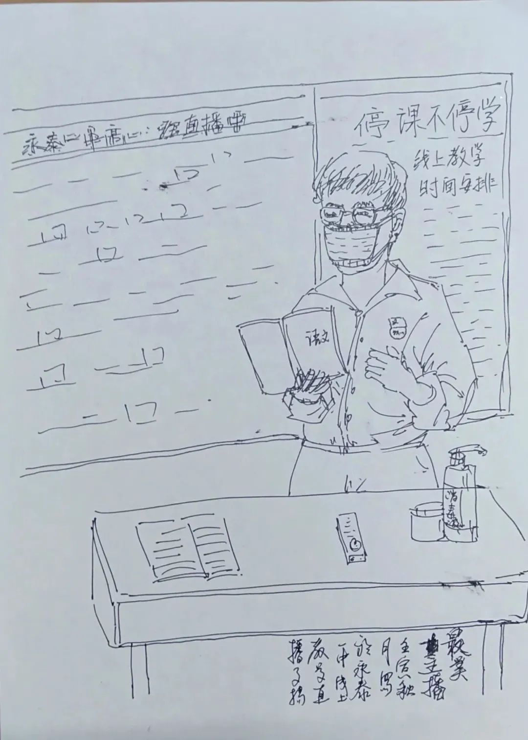 除了参与线上的日常教学和学习外,永泰一中师生也用自己的艺术作品来战“疫”,为抗疫加油。林子扬老师、郑春华老师以及部分同学用自己丰富多彩的艺术语言致敬逆行者和追光者,歌颂伟大的抗疫精神,传递着心中对伟大祖国和英雄人民的热爱与深情。他们创作的艺术作品中闪耀着荧荧之光,点燃了疫情中人们希望与信念的火焰,星星之火,可以燎原。