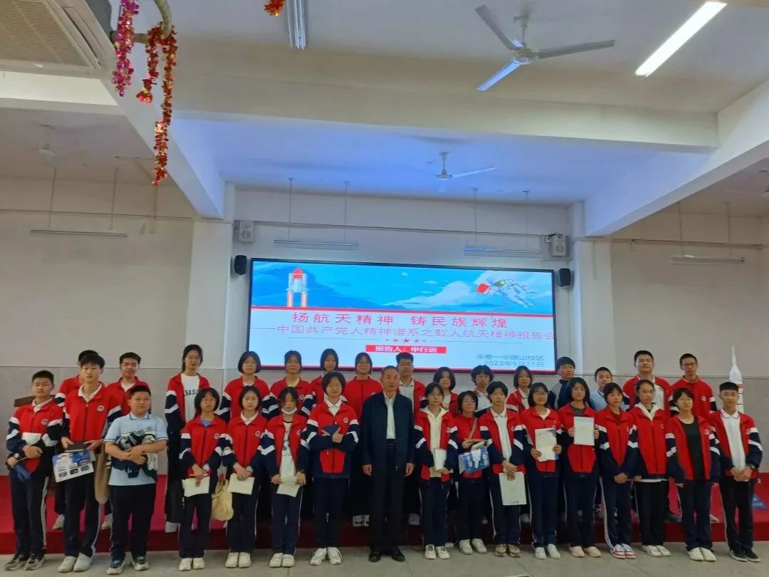 在实验小学、永泰一中旗山校区、永泰一中,申行运为师生们作了“中国共产党人的精神谱系之载人航天精神”主题航天科普报告。报告会上,申行运用深入浅出、幽默风趣的语言,从嫦娥奔月、万户飞天、莱特兄弟造出第一架飞机、加加林首次上天等人物故事入手,给学生们讲解了航天与航空的距离分界线,让航天和航空在孩子们眼中不再那么神秘;介绍了载人航天飞船如何升空,和在空中怎样飞行,航天员们在天空中如何吃饭,如何睡觉,引发了孩子们的无限遐想;还给同学们介绍了曾任教15年的经历、航天发展史、航天员的选拔与训练,如何锻炼航天员坚强的意志,尤其是首位飞天航天员杨利伟在飞船升空的那一刻坚定的心态,让同学们无比感动和深深地震撼。