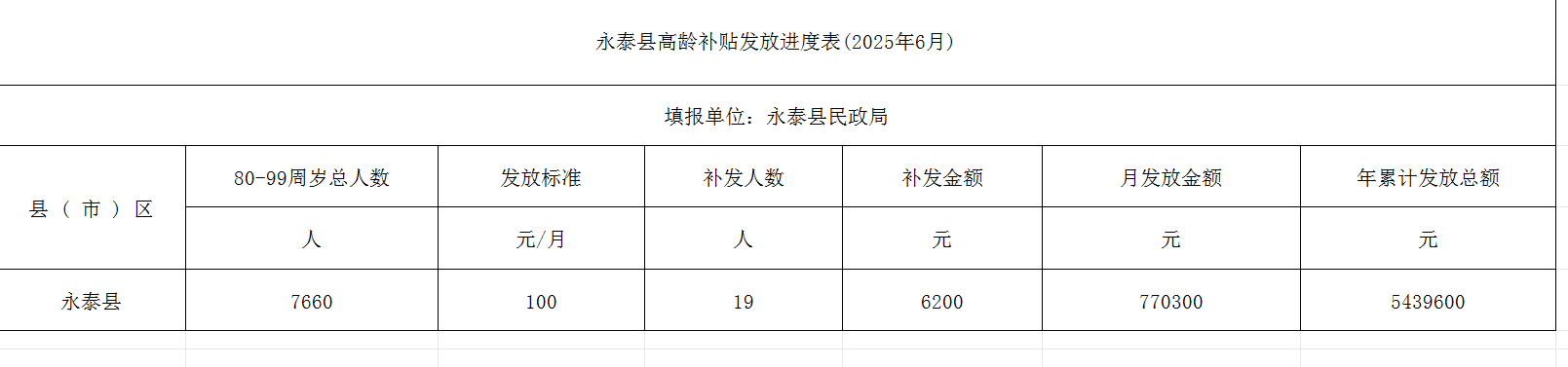 电影天堂 高龄补贴发放进度表(2025年6月)