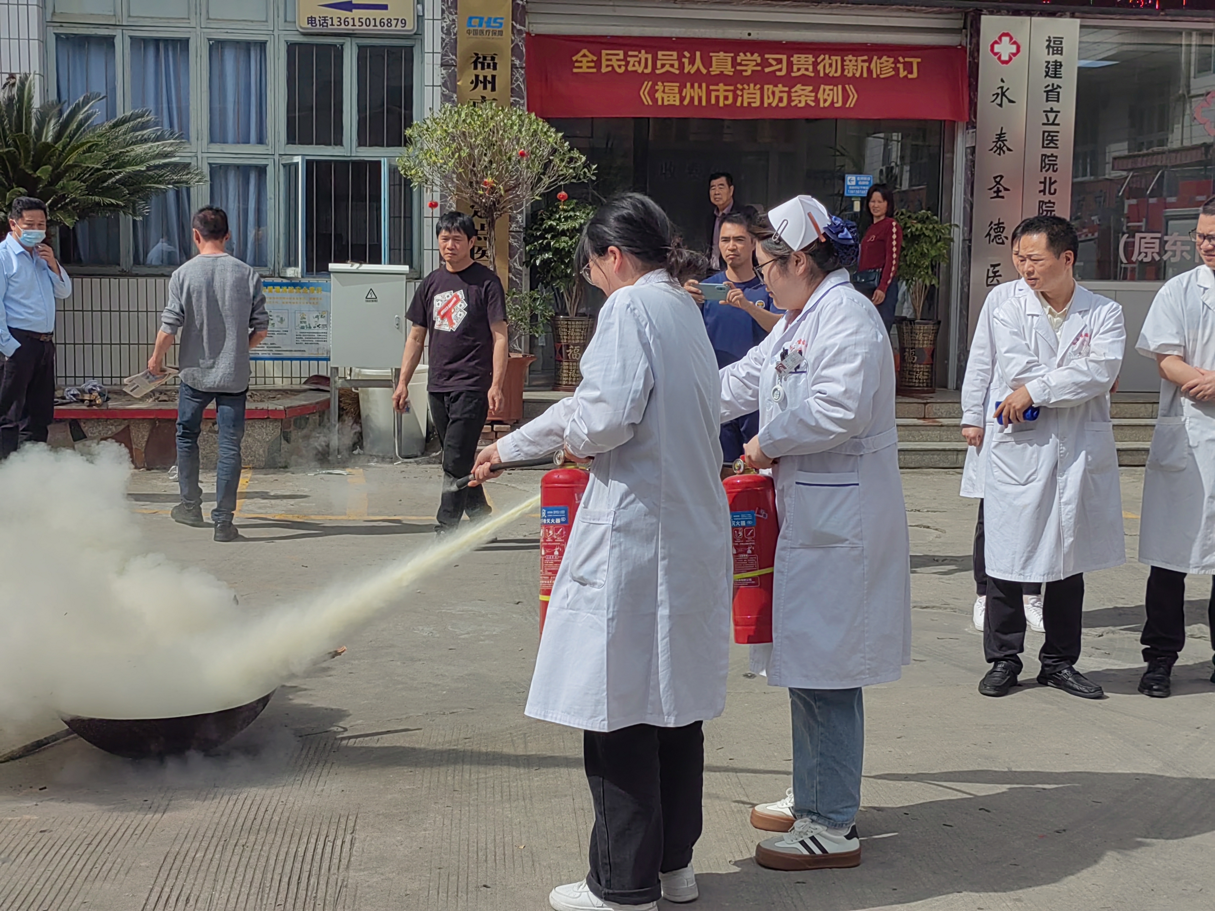 会前,圣德医院组织全体人员参与消防应急演练,其余参会人员现场观摩学习。演练模拟医院病房突发火情场景。工作人员分工明确、配合默契,迅速、有序地完成了火灾报警、人员疏散、转移伤员、初期火灾扑救等各个流程,并进行消防设施实操演练,进一步检验了医院的消防应急处置能力和协同作战能力。演练结束后,县消防救援大队现场点评演练情况并作针对性指导。