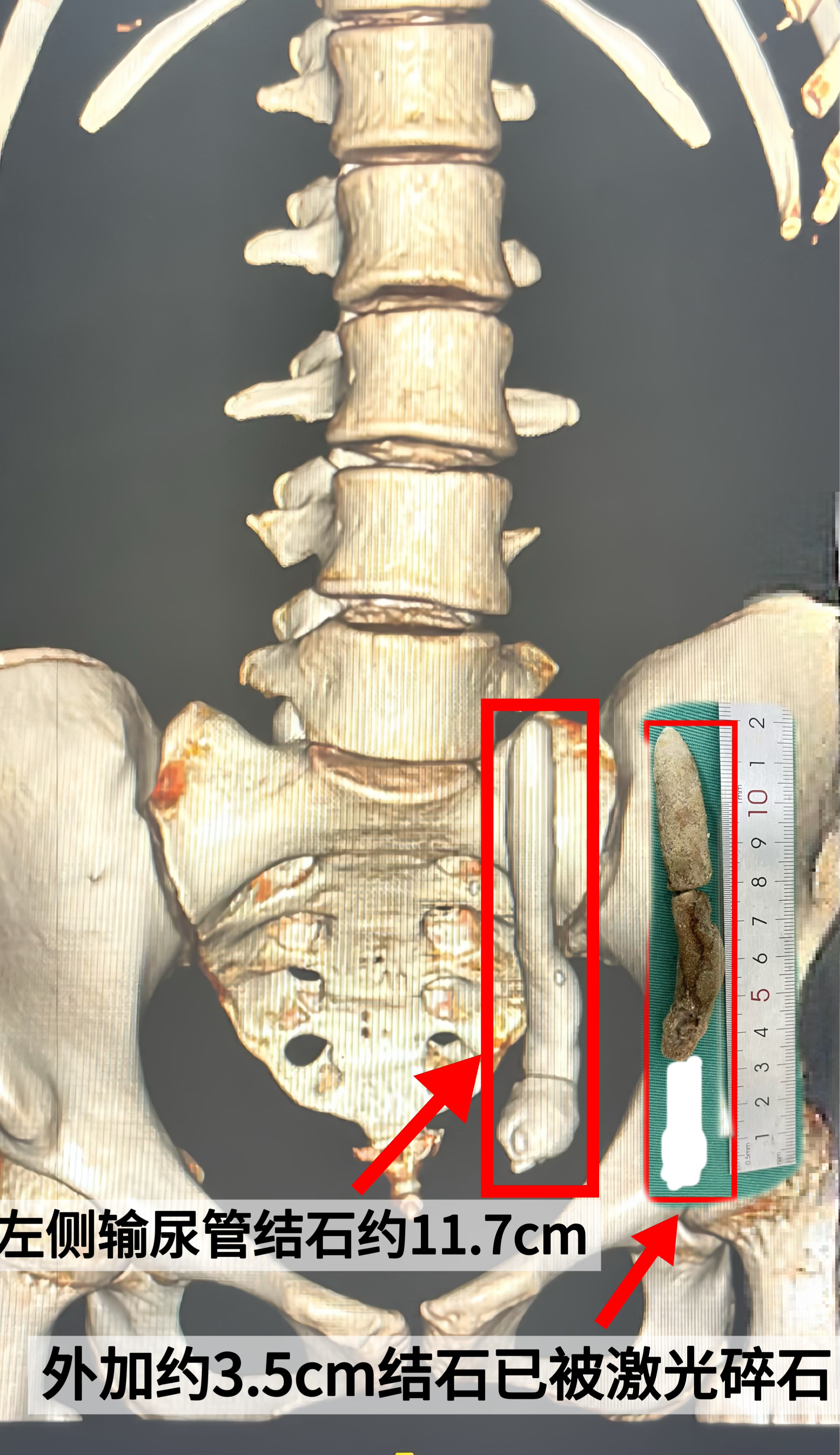 医院泌尿外科团队立即联合妇科、内科、麻醉科、外科等多科室会诊,为患者量身定制精准的手术治疗方案。经评估,该患者左侧输尿管结石体积、直径大,如果采用传统手术方式,不仅难以一次性完成碎石,还可能迫使患者经历2—3次住院手术,无疑将加重其身体创伤、延长术后恢复周期,并对远期康复效果产生不利影响。