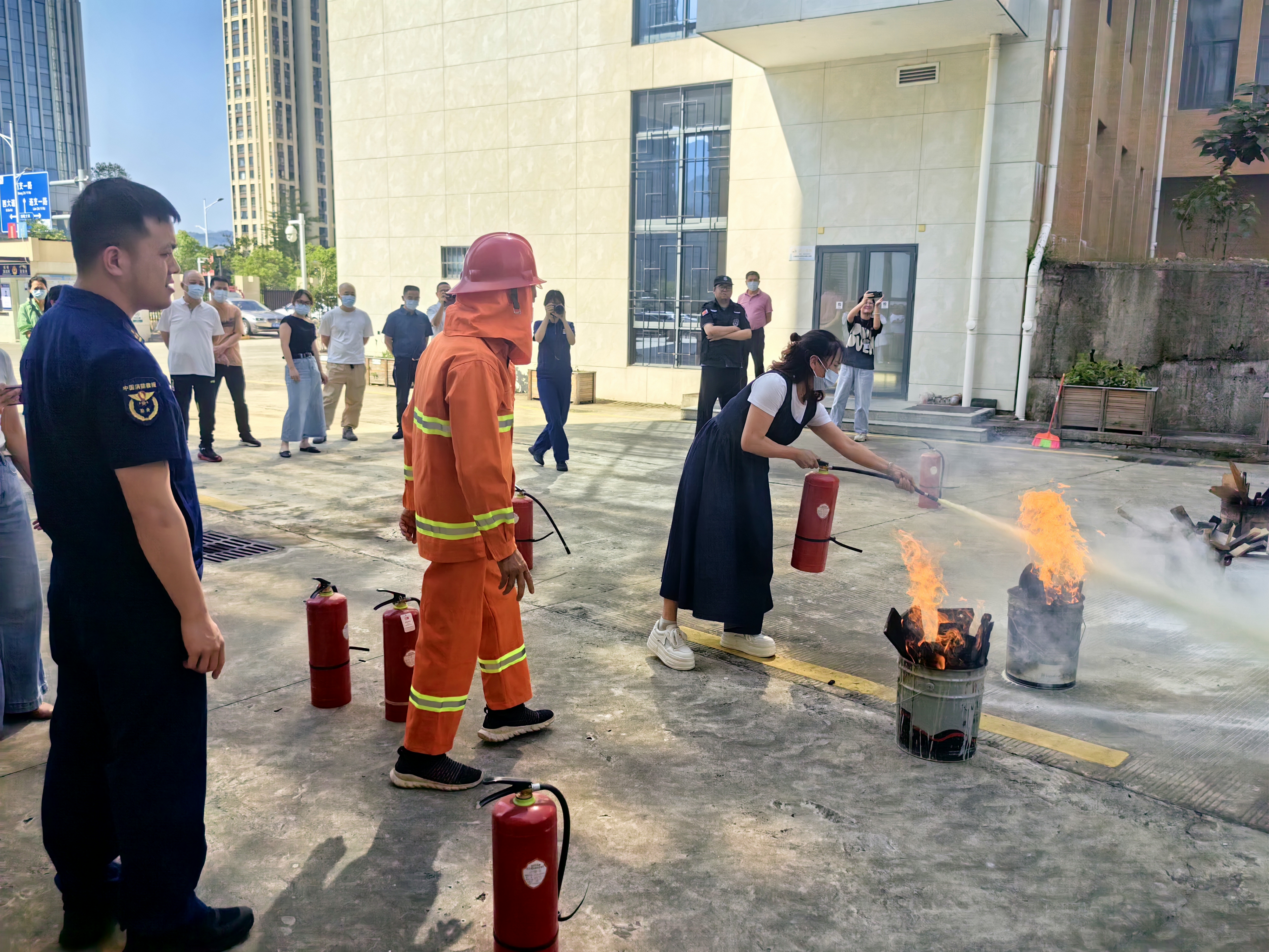 培训会前,县中医院开展了消防灭火及应急疏散演练,模拟住院部某病房发生火灾后的应急处置全程。县消防救援大队教员现场提出指导意见,并指导参训人员进行消防设施实操演练。