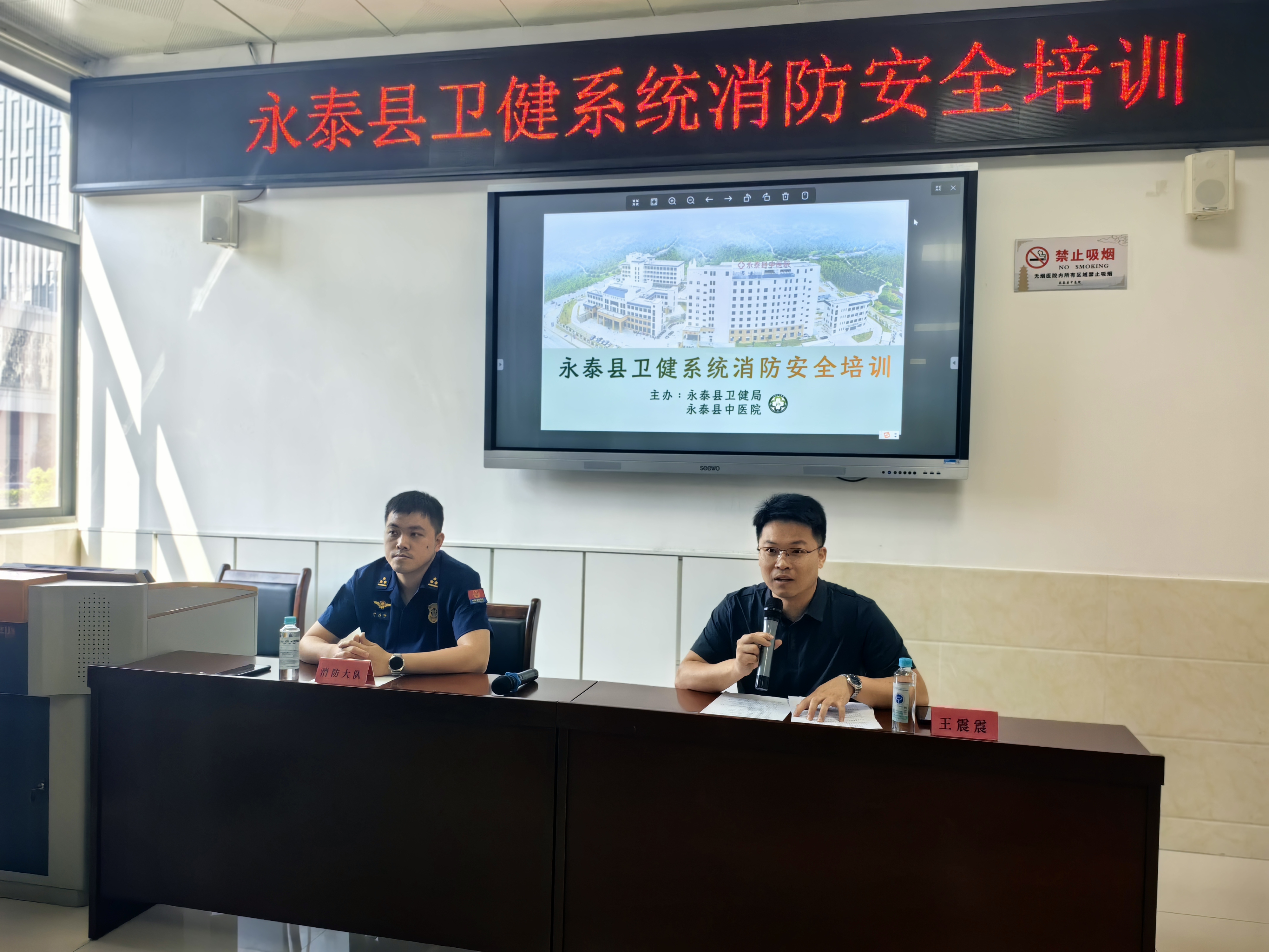 演练结束后,县卫健局召开消防安全培训会。消防救援大队教员结合近年来医疗卫生机构发生的典型火灾案例,详细讲解了消防法律法规、火灾预防、初期火灾扑救、火场逃生自救等方面知识。