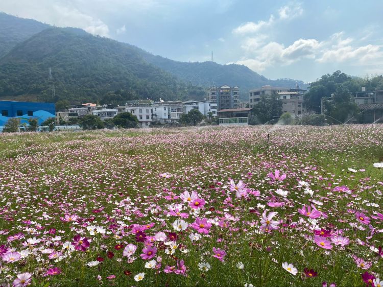 目前,葛岭镇沿溪地块波斯菊的花海项目在中秋国庆前后已盛开。