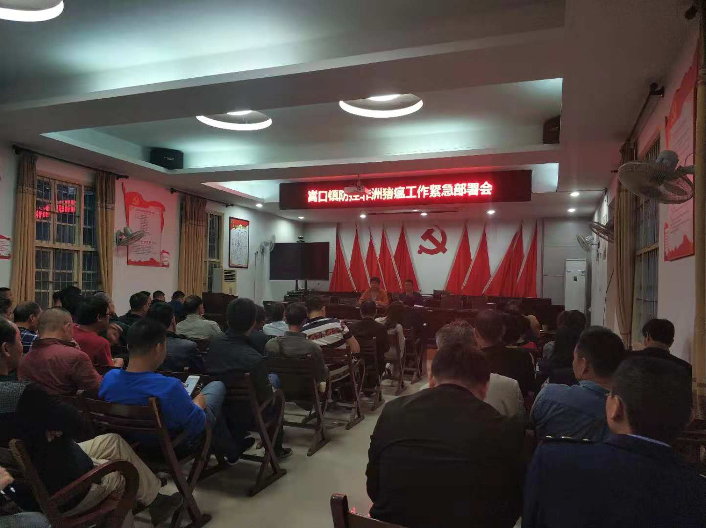 会上分管领导吴宇坚副镇长传达省、市、县防控非洲猪瘟会议精神,针对当前非洲猪瘟防控工作进行安排部署;要求各村立即组织力量逐户摸排,发现问题立即上报,做到早发现早处理。强调非洲猪瘟防控工作决不能掉以轻心,麻痹大意。