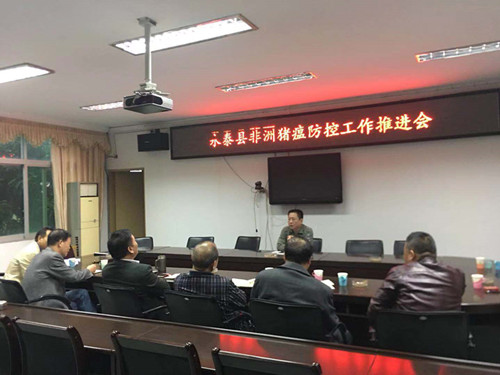 在县农业局三楼会议室召开非洲猪瘟防控工作推进会